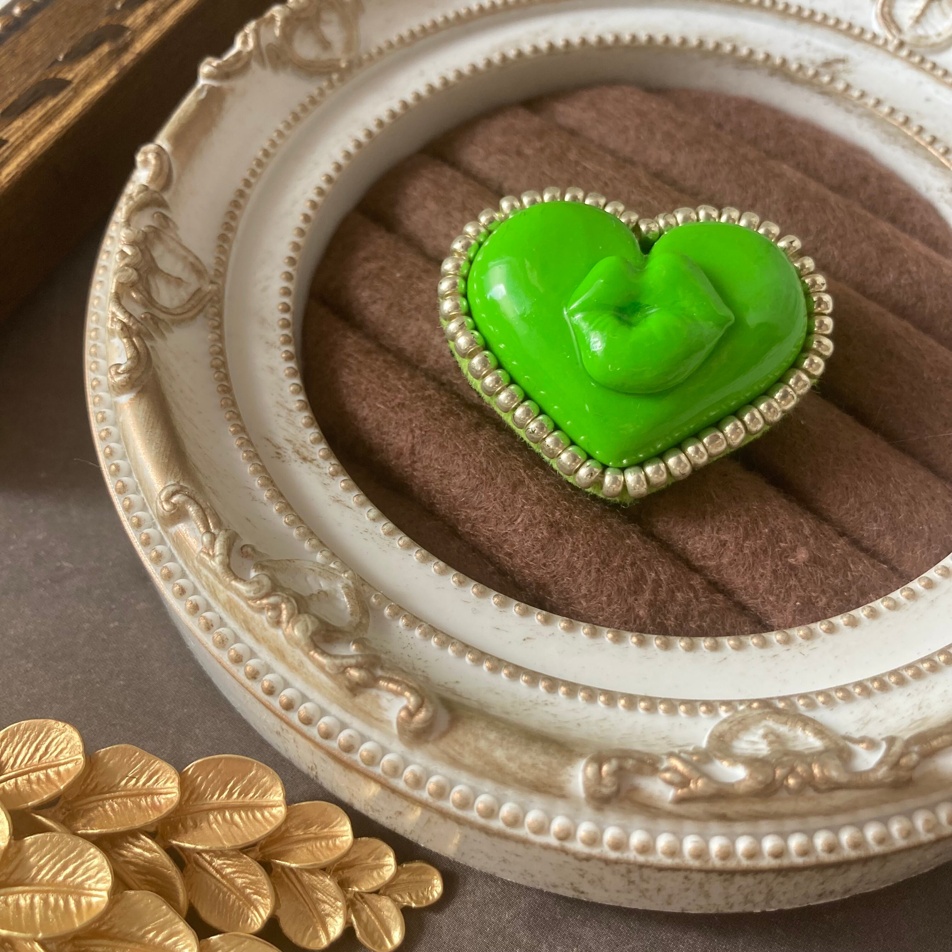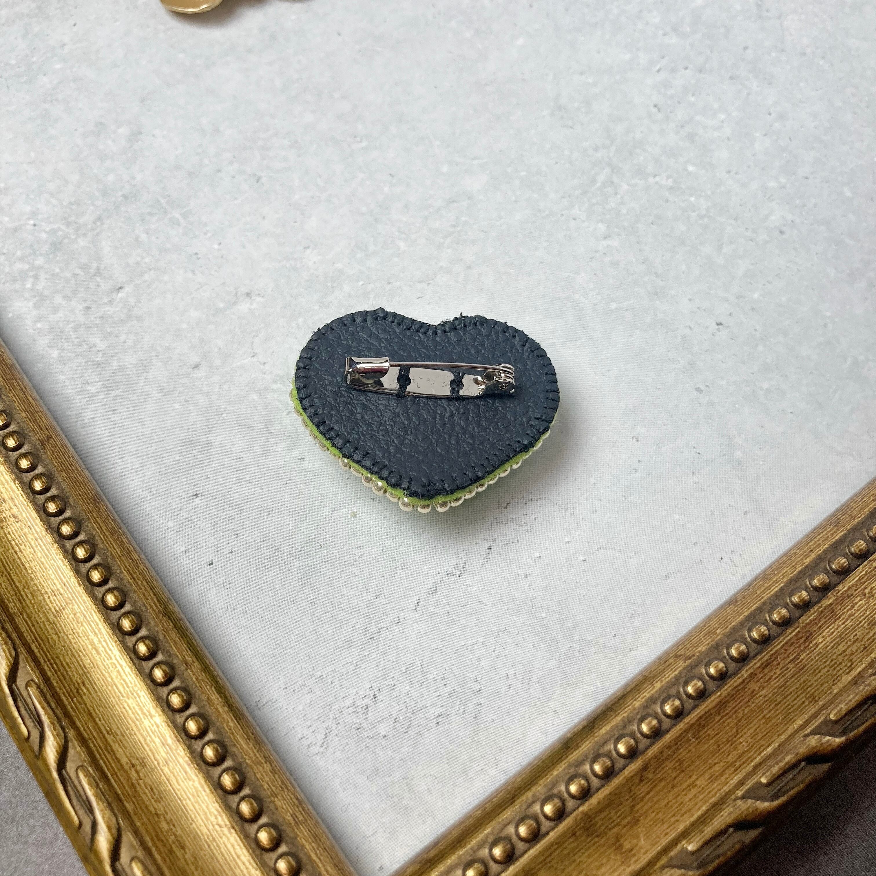 イエローグリーンのクチビル子・大きいサイズのブローチ