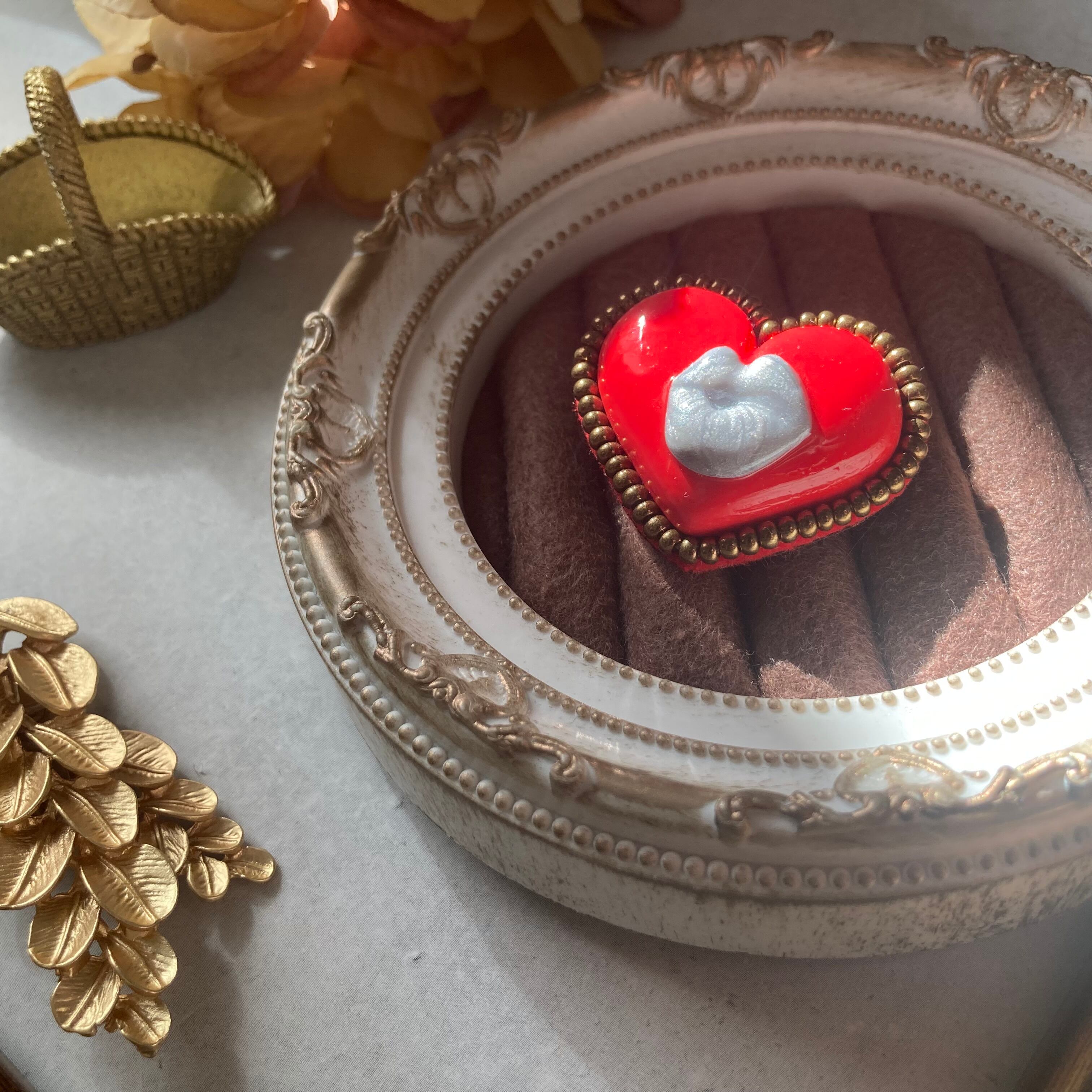 ポリマークレイ、真鍮、ビーズ、フェルト、フェイクレザー