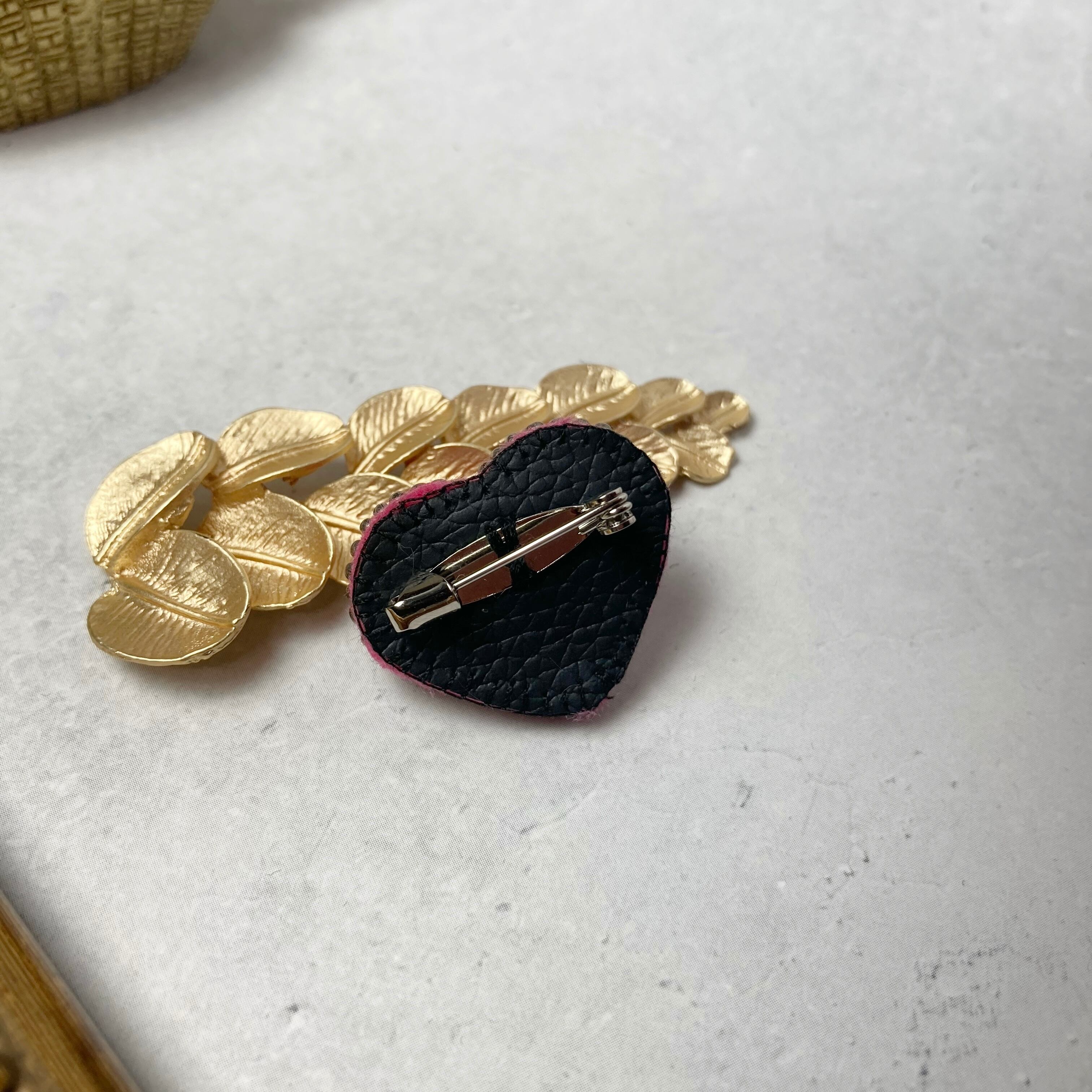 ポリマークレイ、真鍮、ビーズ、フェルト、フェイクレザー